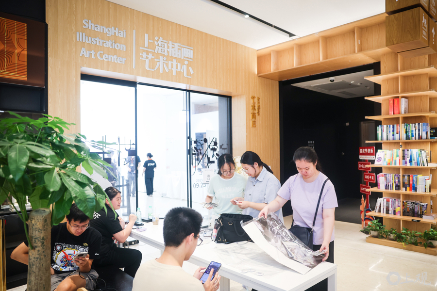 7楼的上海插画艺术中心,虚拟歌手“异世界情绪”上海特展吸引众多二次元爱好者专程打卡。